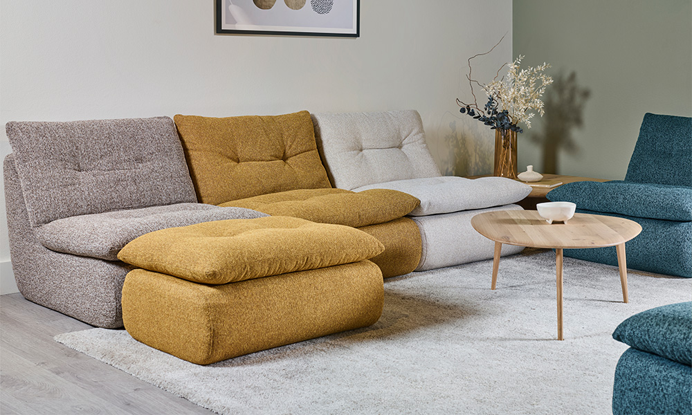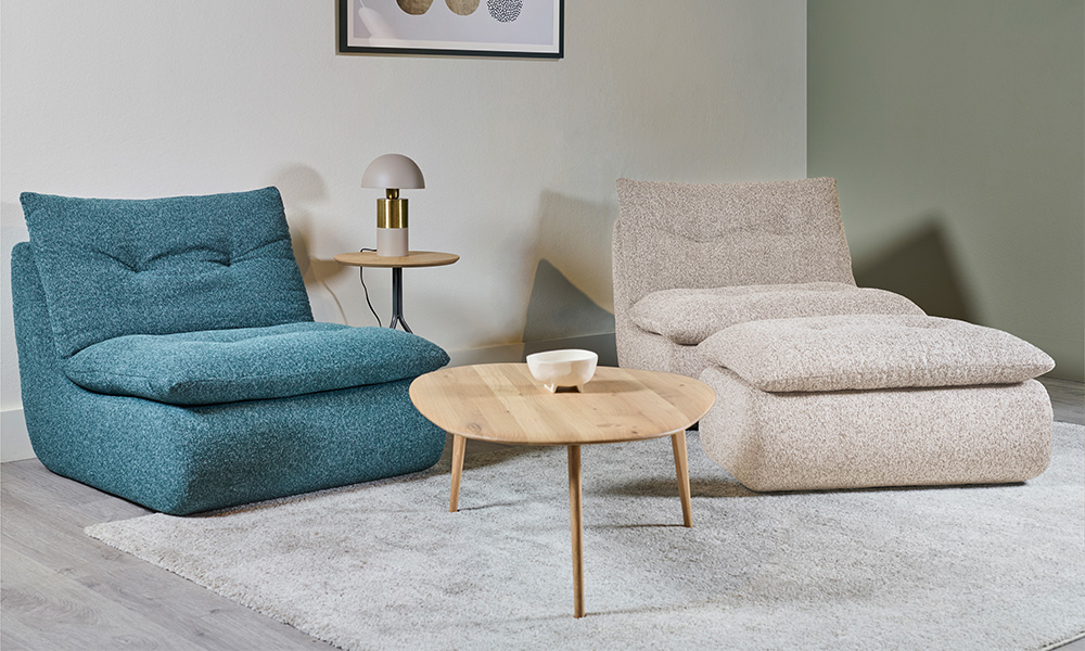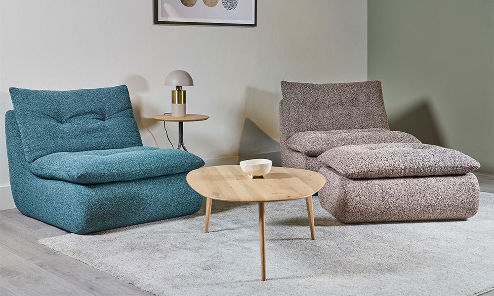 Mobilier compressé. Revêtement tissu. Garnissage mousse polyester 32kg/m³.