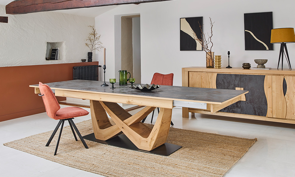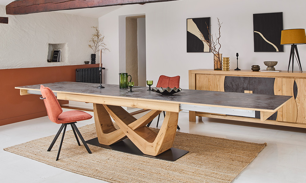 Table repas spectaculaire L.220 H.77 P.100 cm – 1 allonge de 90 cm + 2 allonges de 40 cm